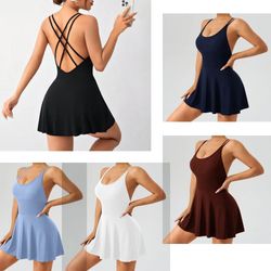 Workout dress with built-in shorts & removable bra for a total coverage and ease of movement, you can reach to return every serve without anything holding you back. Plus, two side pockets are added in undershorts are great for keeping your essentials within reach.Fashion meets functionality with this gorgeous golf dress. Snug at the top, this dress with shorts underneath flares into a flattering A-shape, while smoothing the trouble areas. In this Ewedoos exercise dress, you've got all the style and confidence to crush the competition.